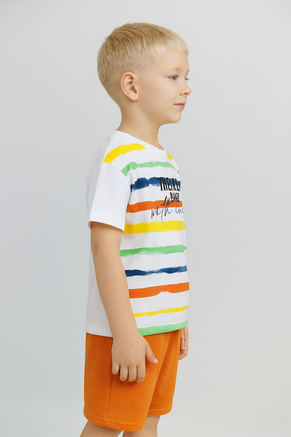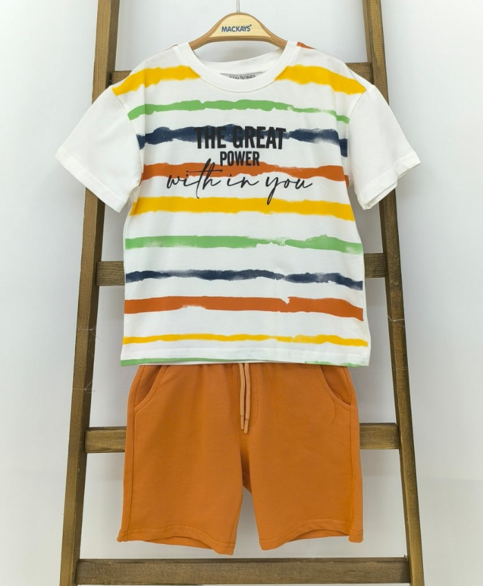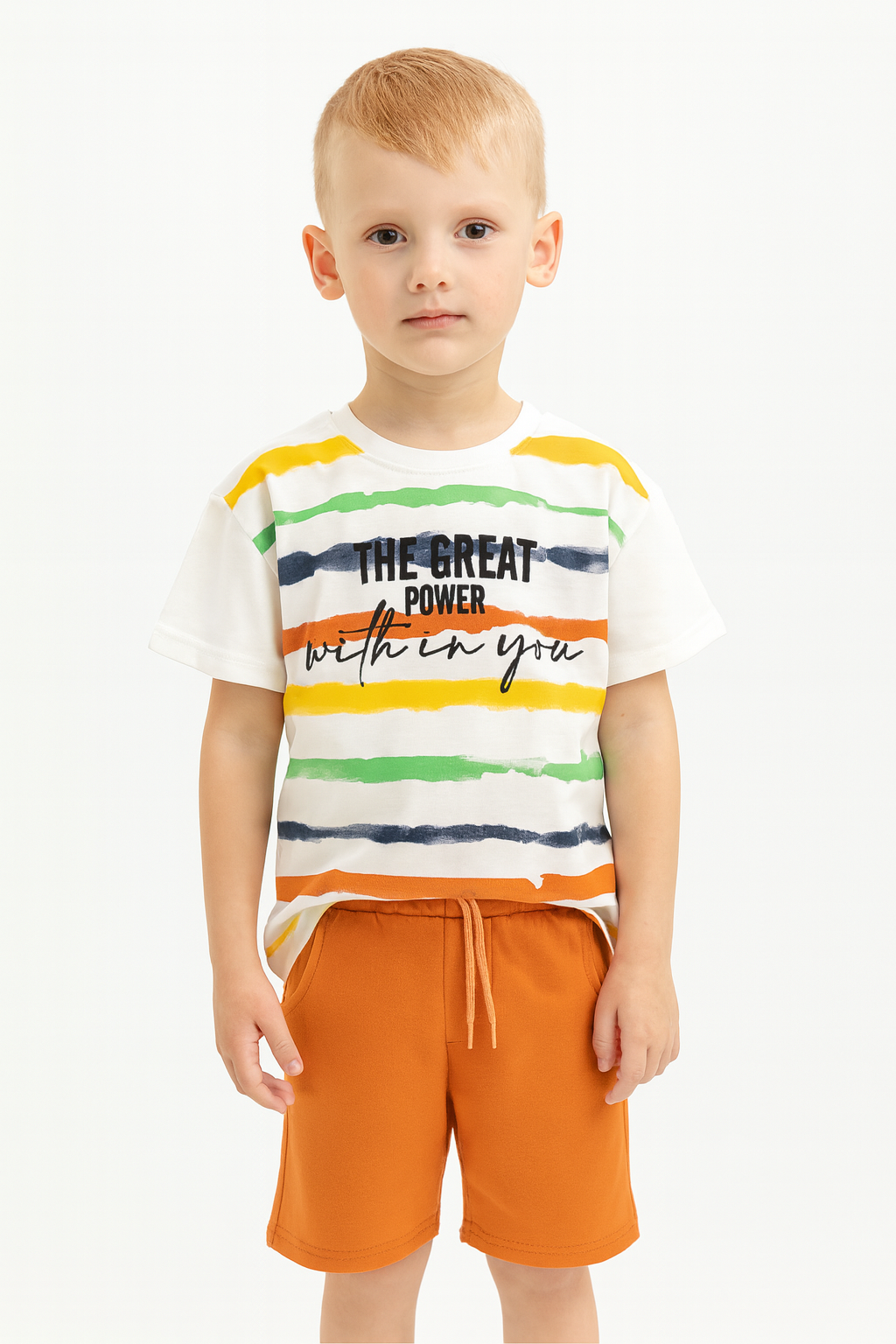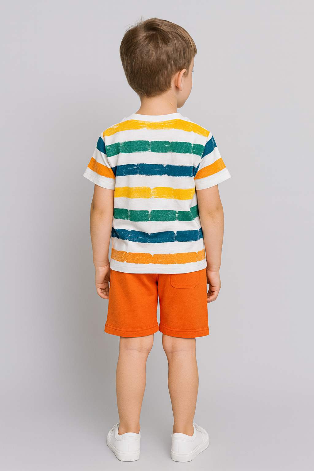 Çizgili Tişört & Turuncu Şort Erkek Çocuk Takımı | Renkli Yaz Macerası