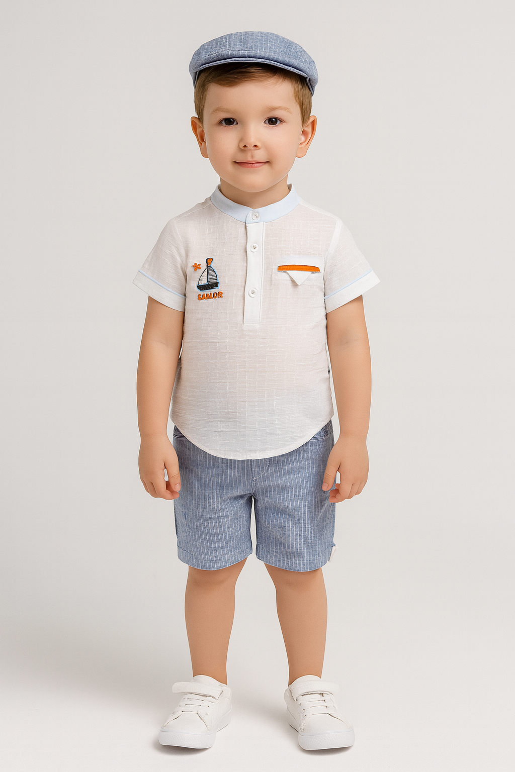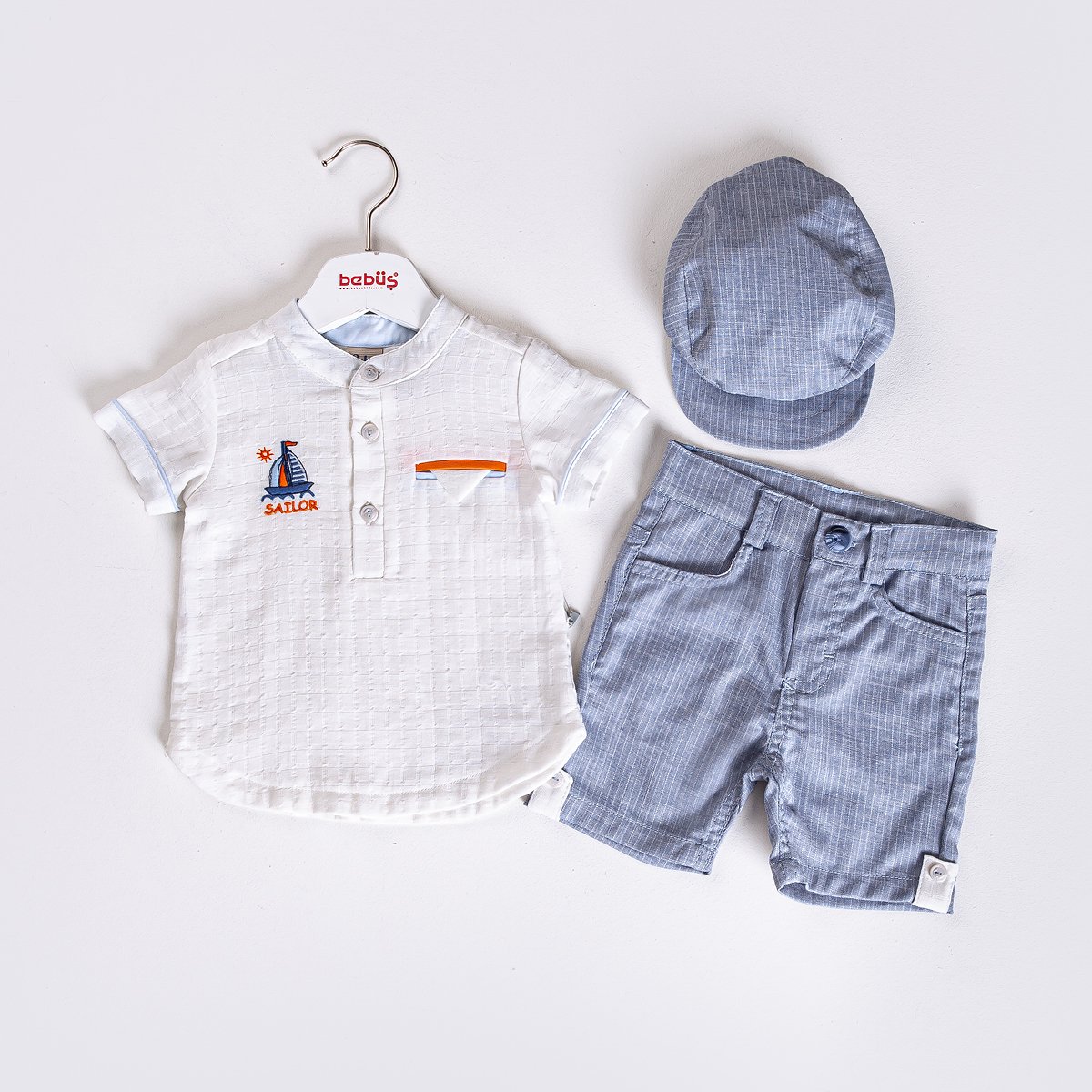 Erkek bebek keten gömlekli şortlu 2li takım9-12-18-24 ay