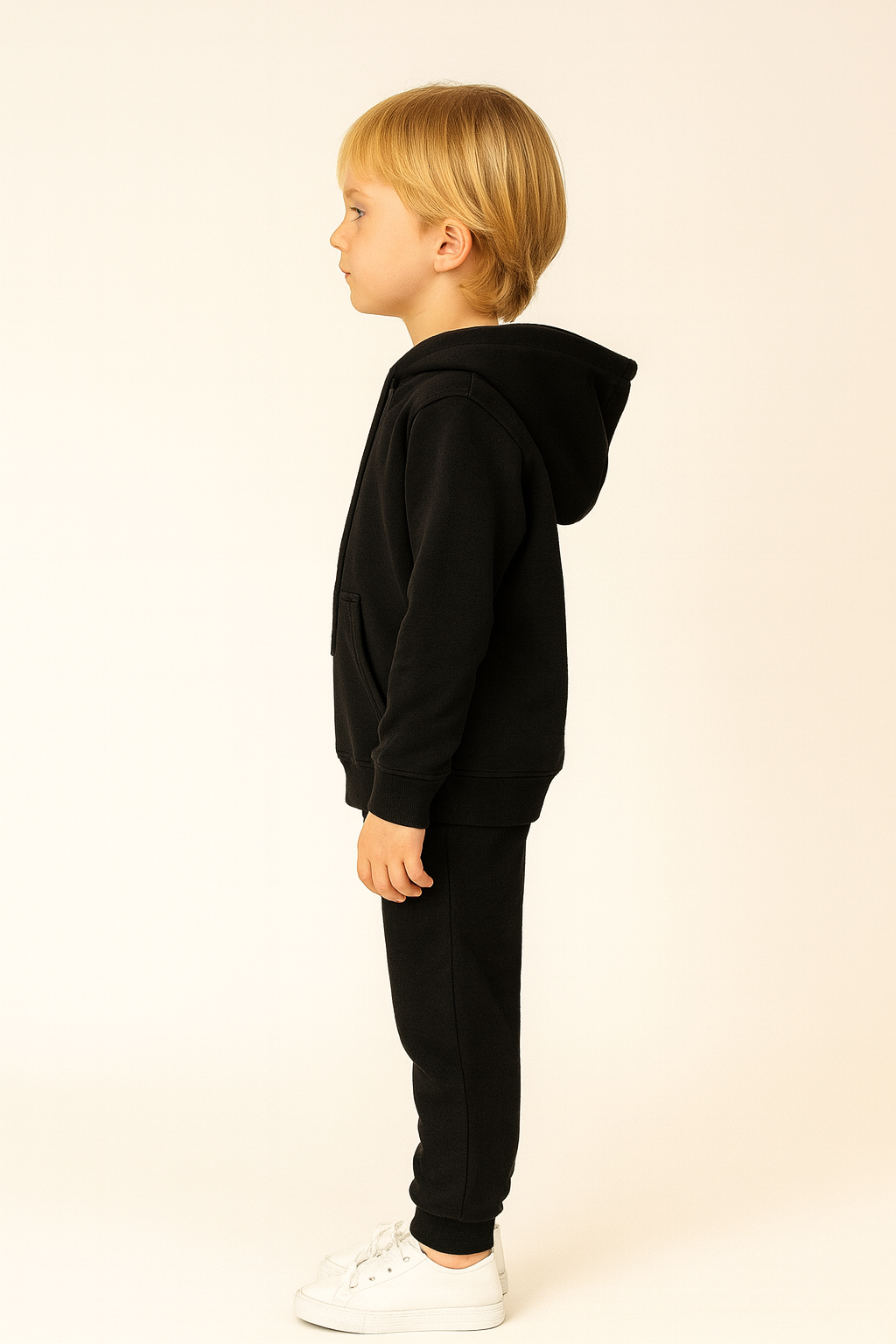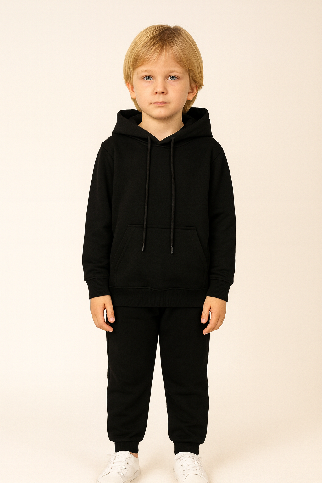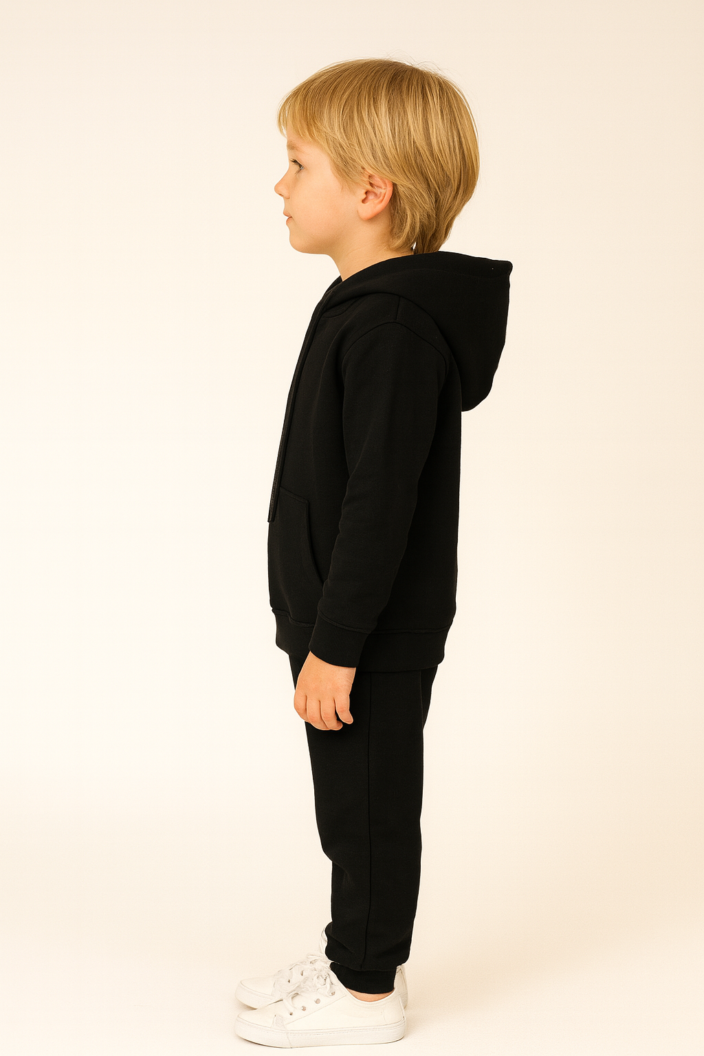 Erkek çocuk kapşonlu kanguru cepli bağcıklı sweatshirt