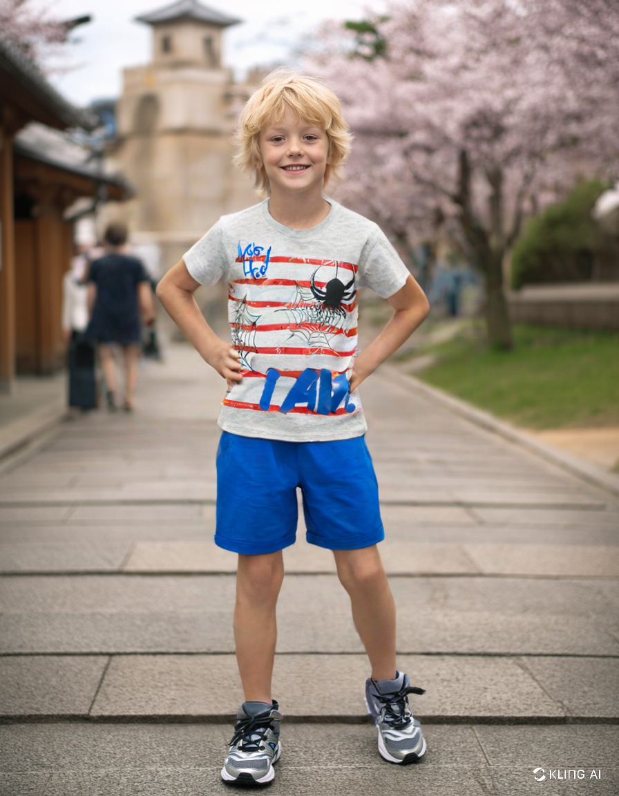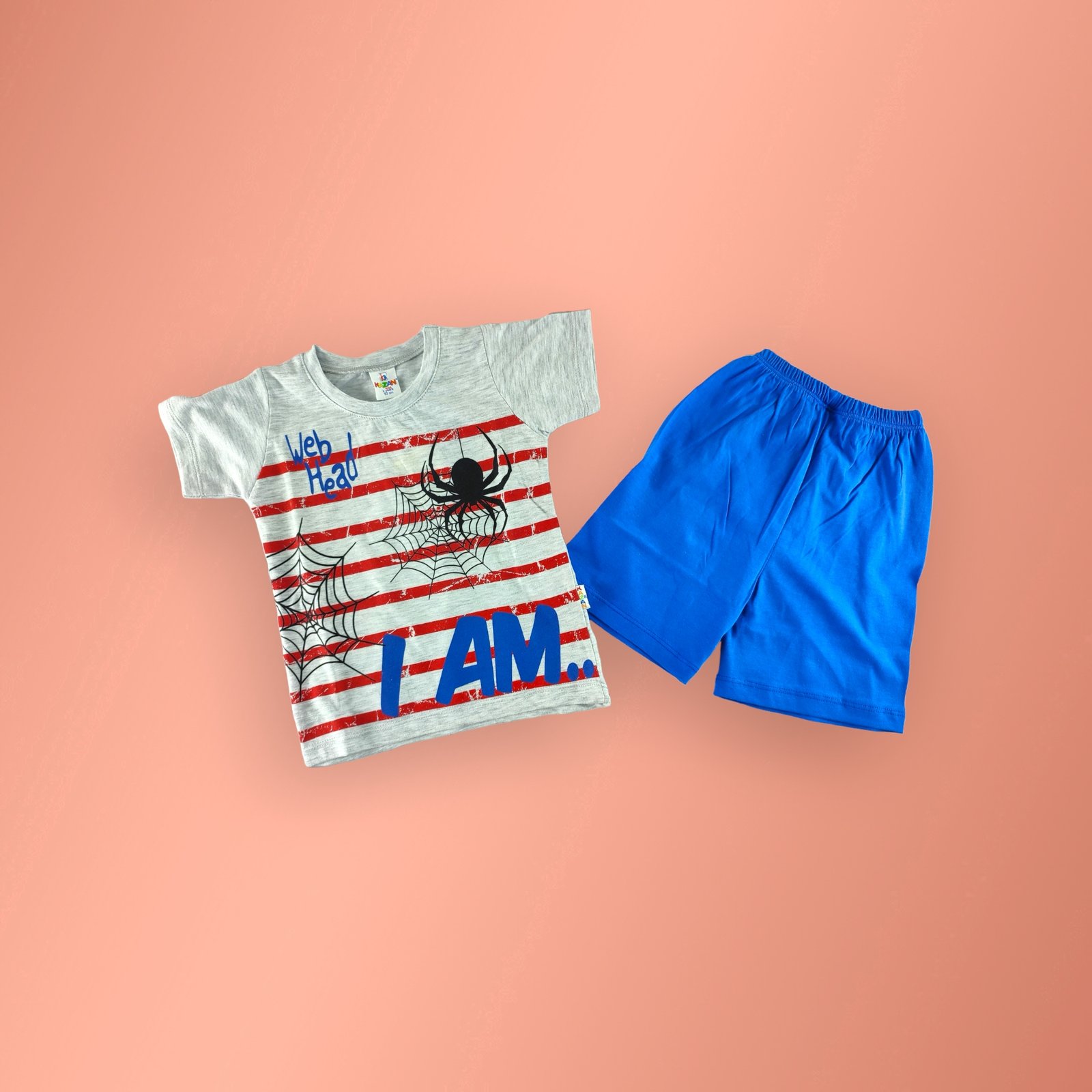 Erkek Çocuk Şortlu 2'li Takım | Mavi & Beyaz & Kırmızı | Şort & Tshirt Takım