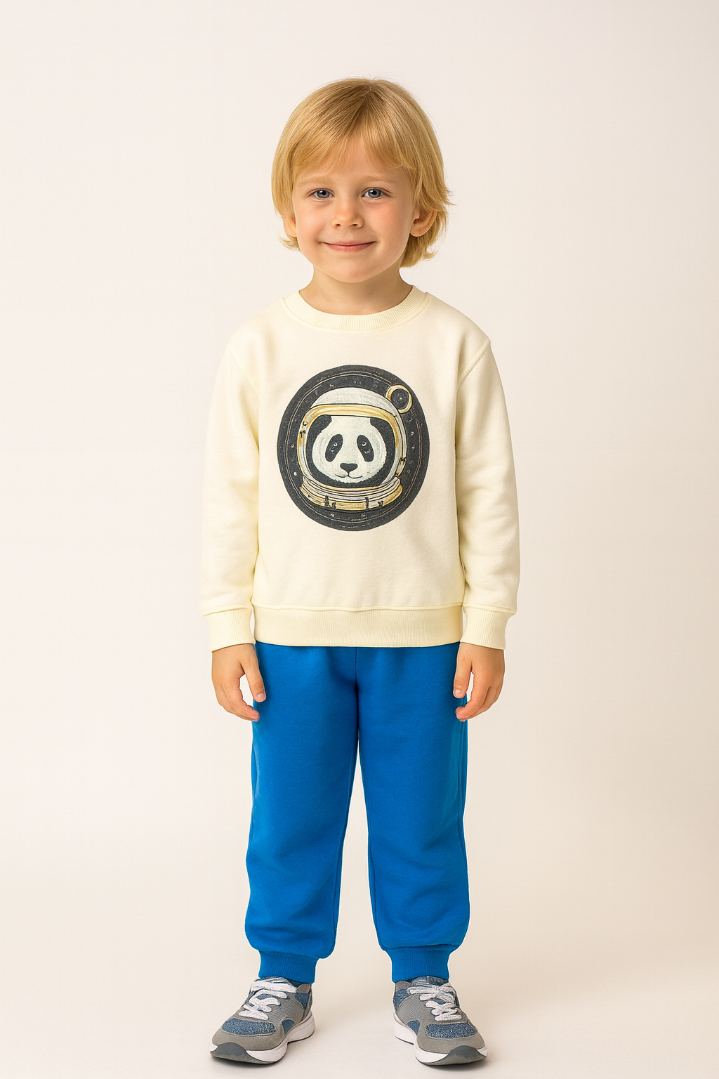 Erkek çocuk stay high yazılı astronot baskılı bisiklet yaka 2 ip eşofman takım