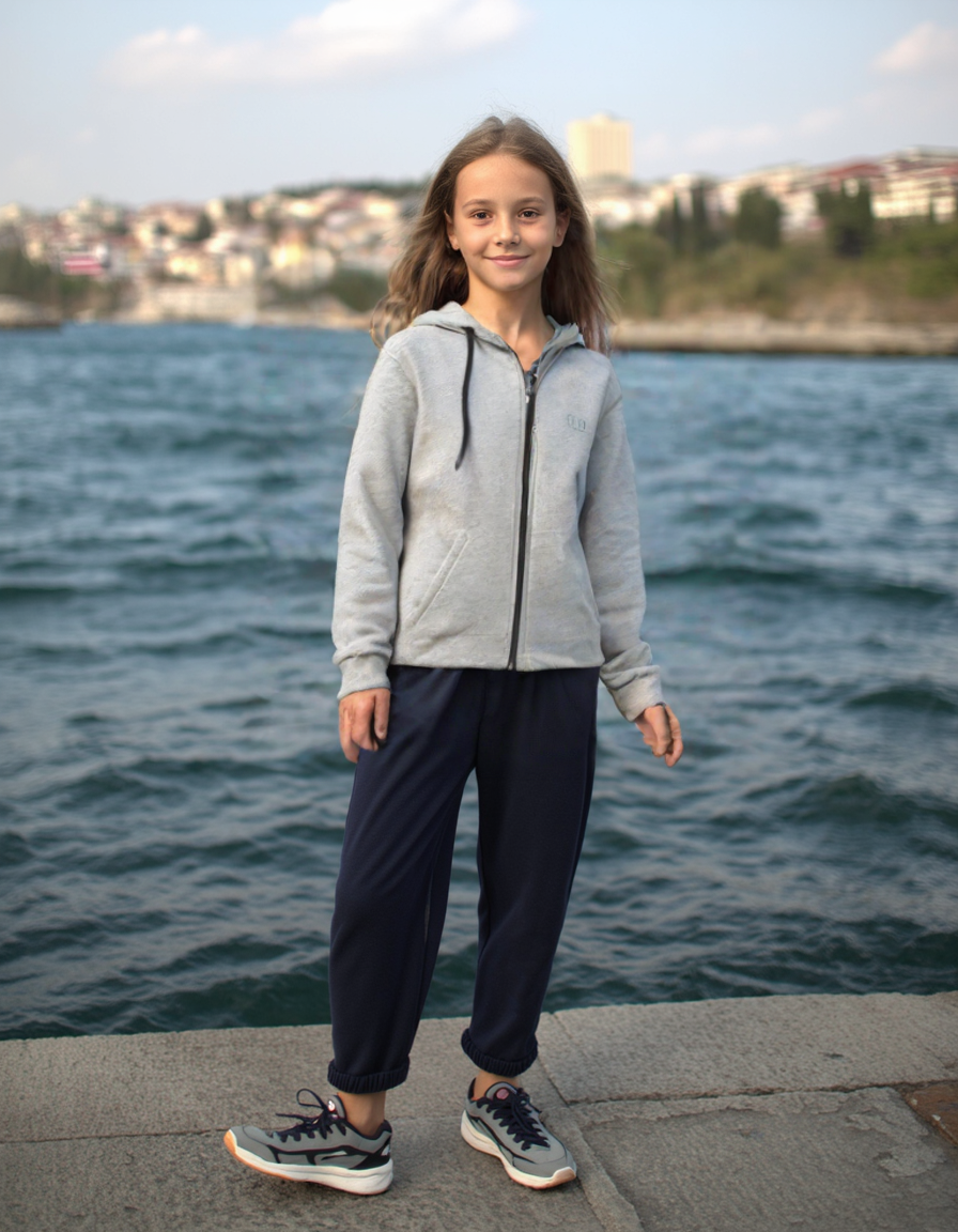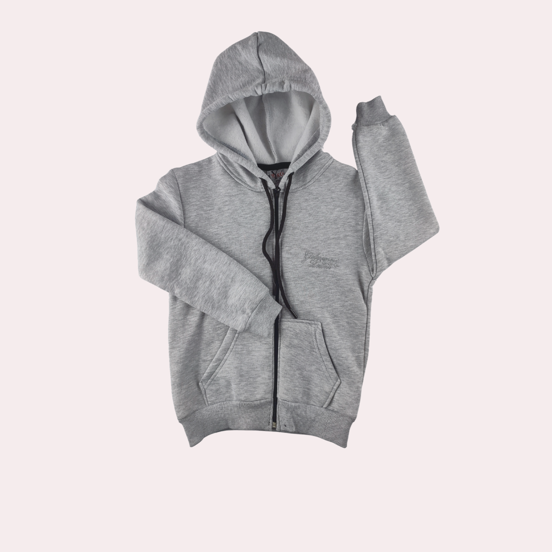 Gri Kapşonlu Fermuarlı Erkek Çocuk Hırkası | 9-12 Yaş | Uzun Kollu