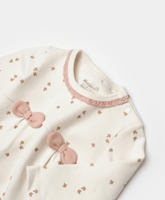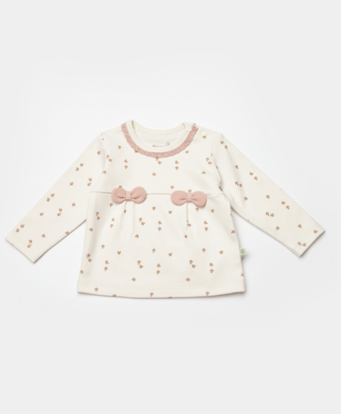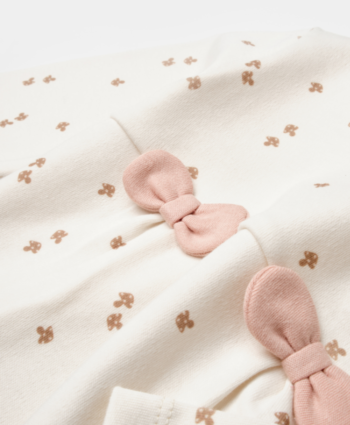 Kız bebek biorganik fiyonklu uzun kol mantar baskılı 2li takım