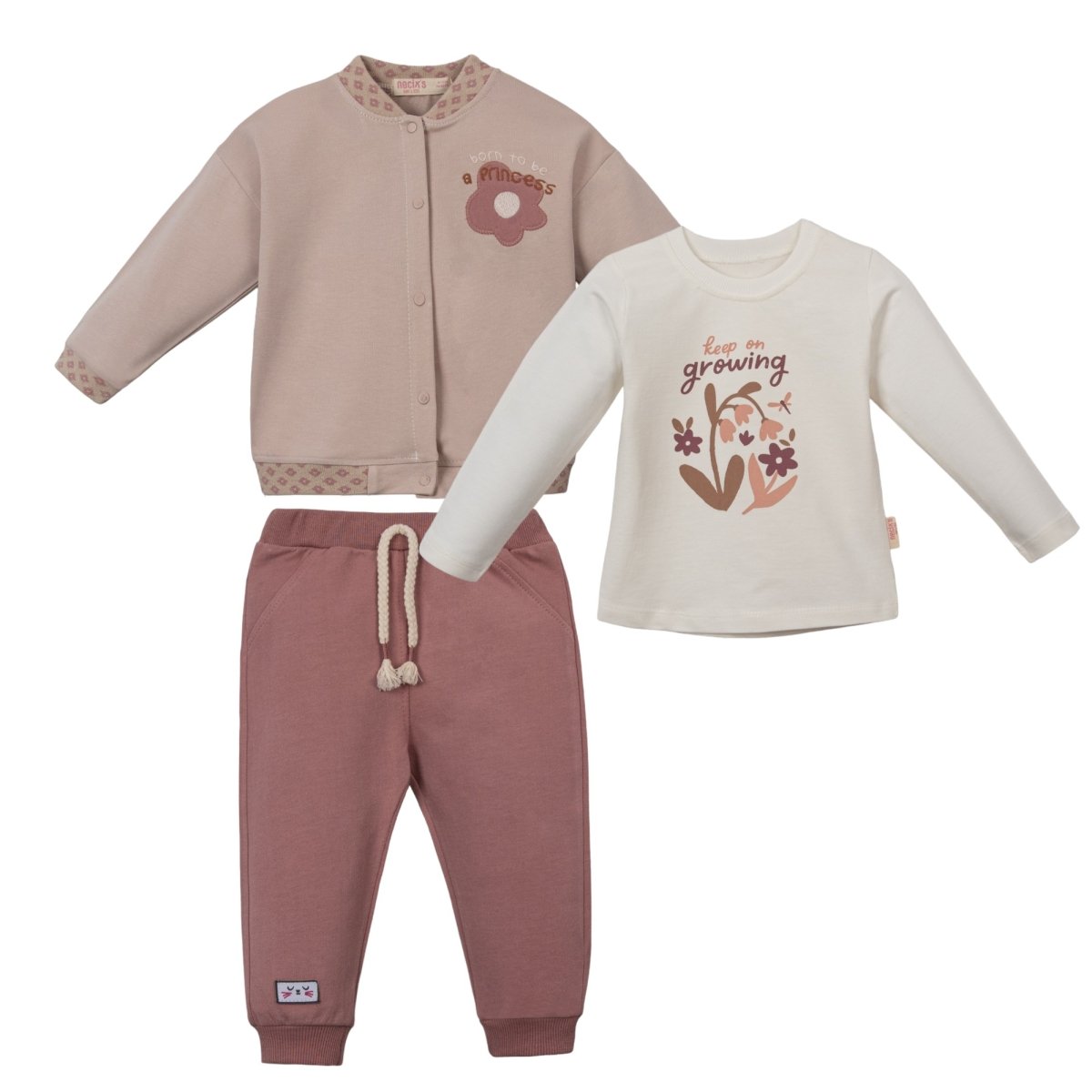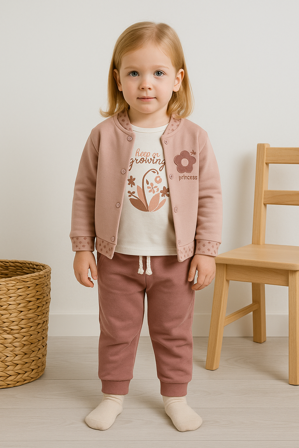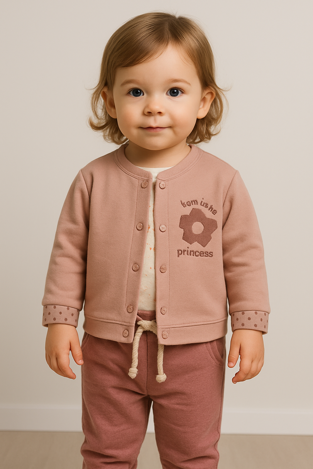 KIz bebek flowerprincess yazılı kolej ceketli 2 ip 3lü takım