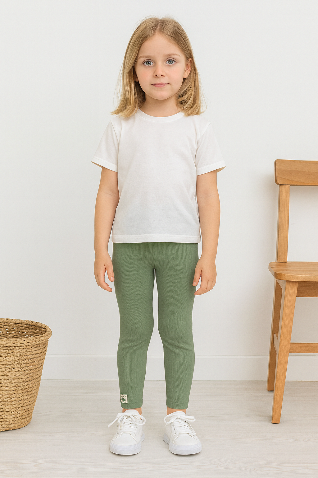 Kız bebek likralı tek alt tayt – yeşil renk-likralı- bel kısmı lastikli-esnek-4-24 ay