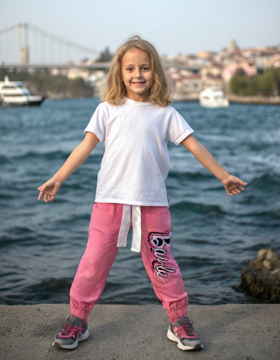 Kız Çocuk Barbie Desenli Pamuklu Alt Eşofman | 5-6-7-8 Yaş | Pembe