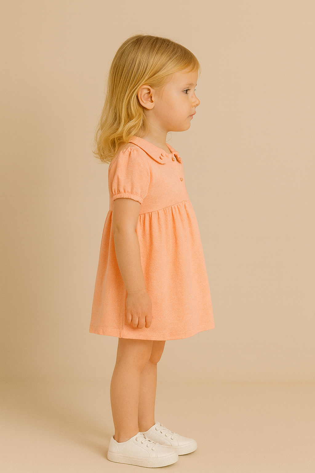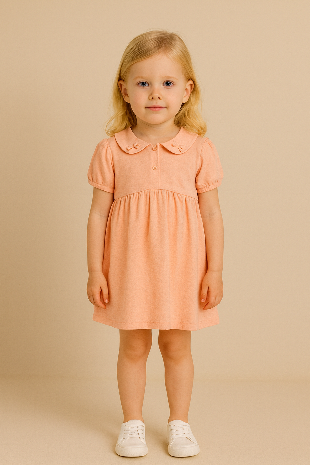 Kız çocuk bebe yaka bel kısmı boncuklu turuncu renk elbise -2 – 3 – 4 -5 yaş