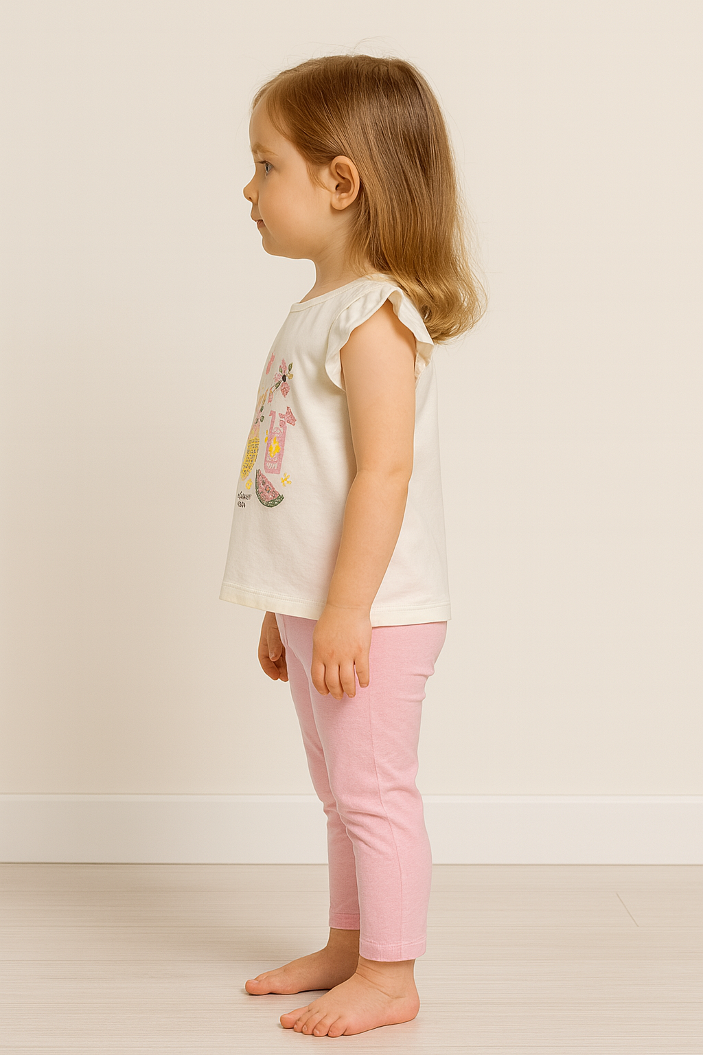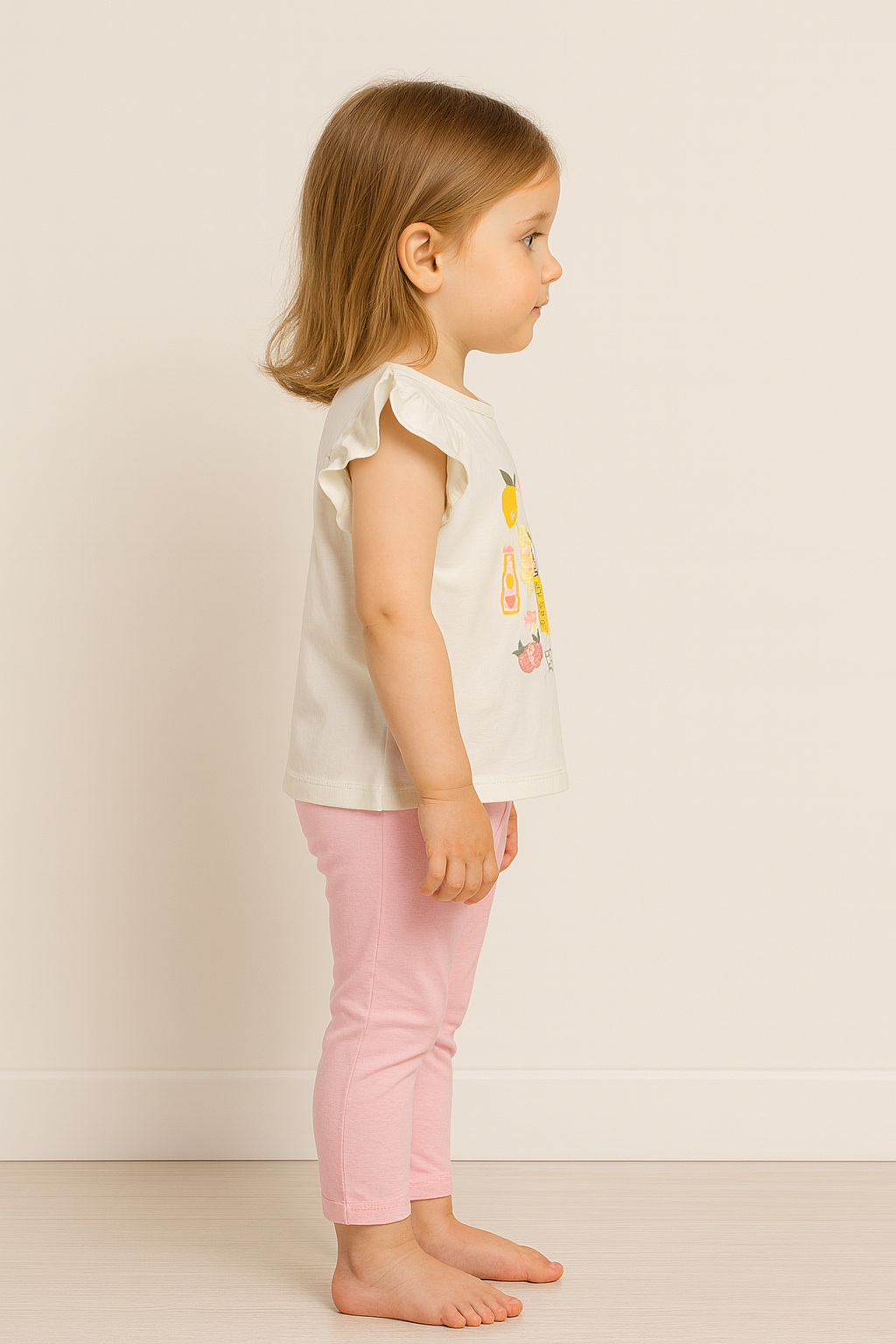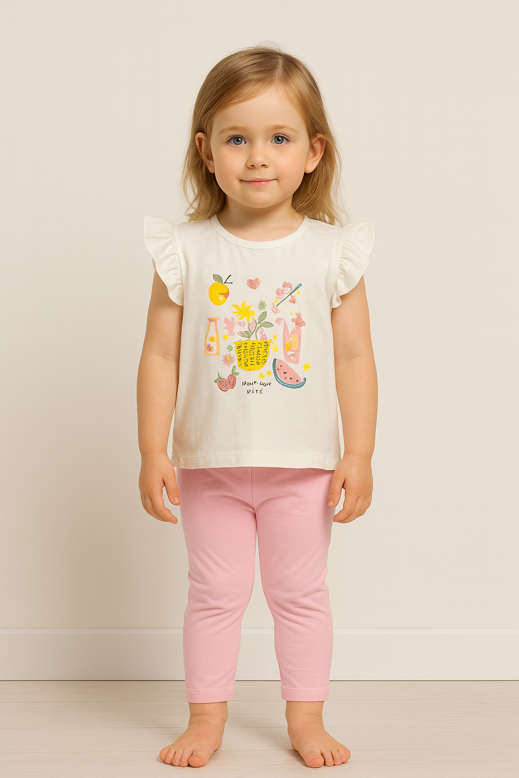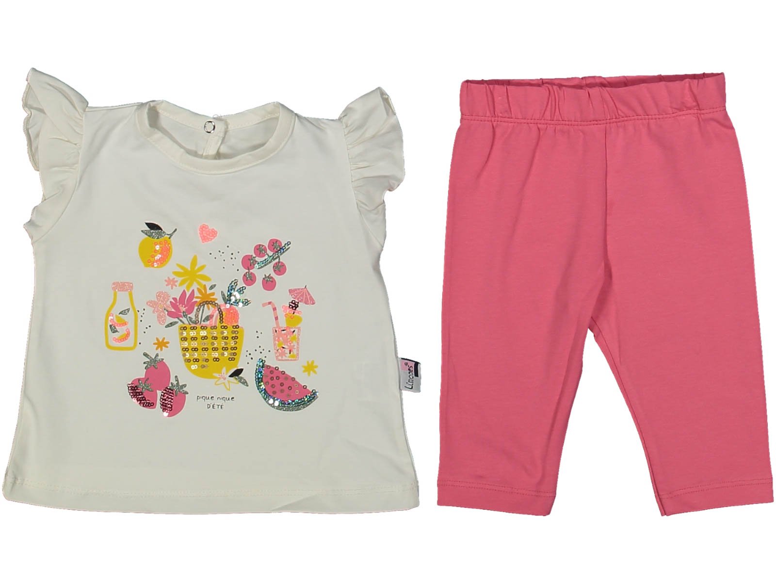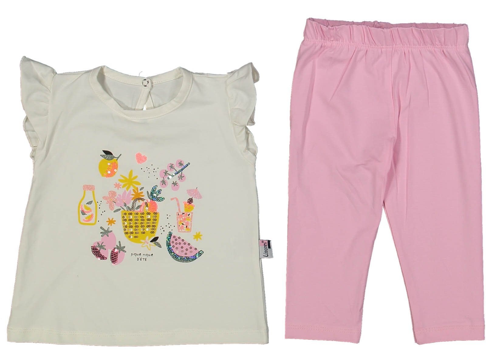 Kız çocuk meyve baskılı pullu kısakollu taytlı 2li takım