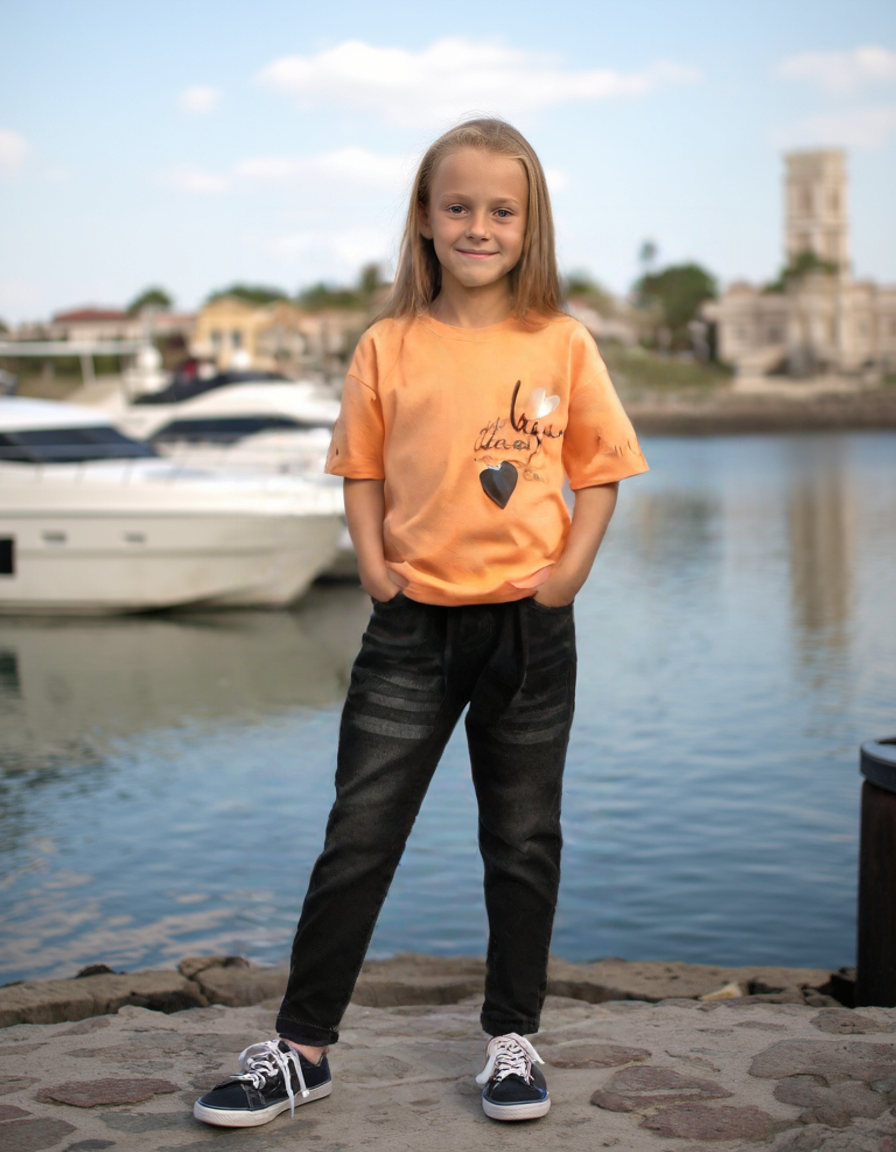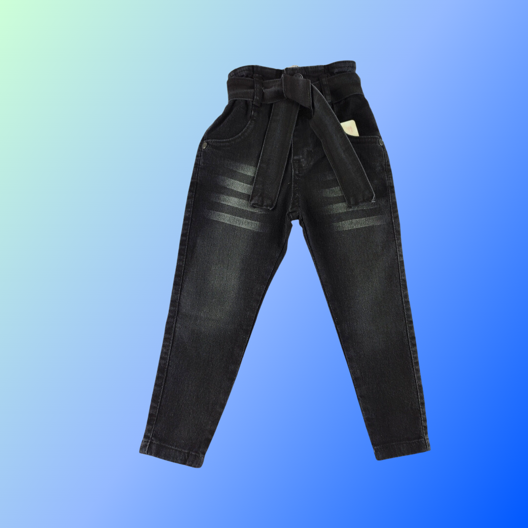 Kız Çocuk Siyah Kot Pantolon – Yüksel Bel ve Esnek Kumaş – 2-7 Yaş – Dört Mevsim Kullanımı