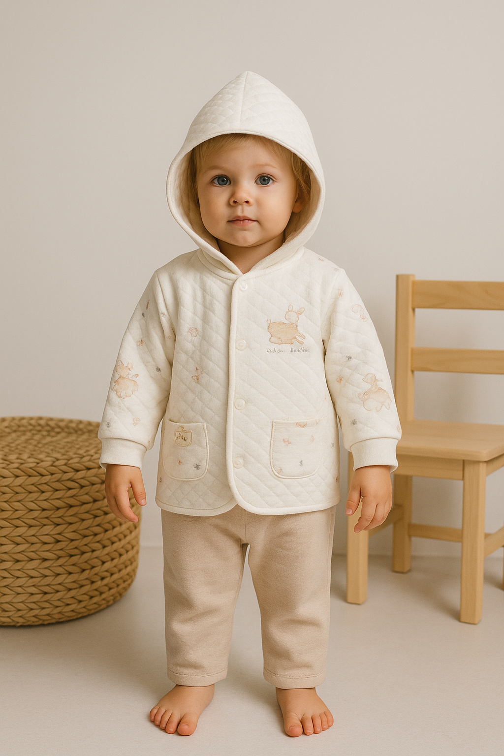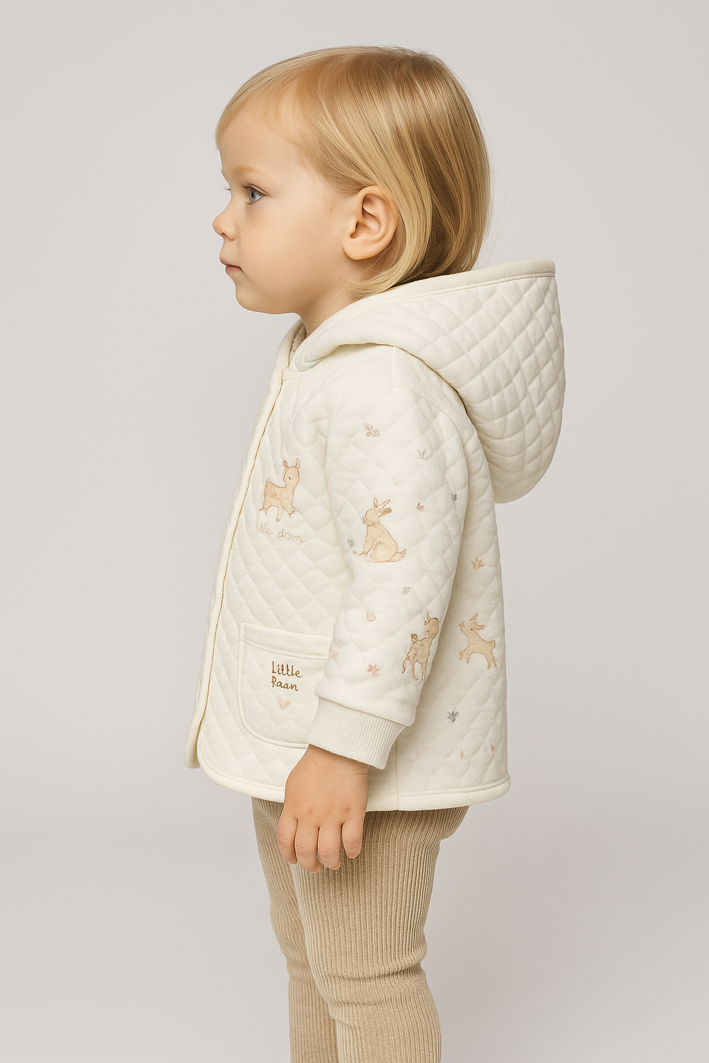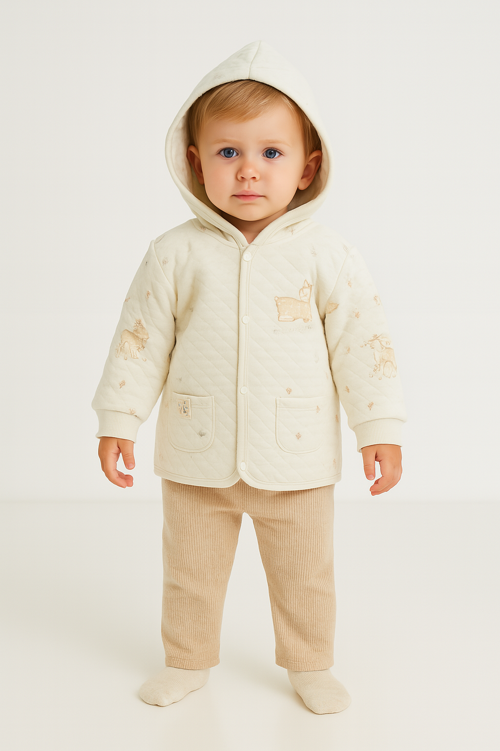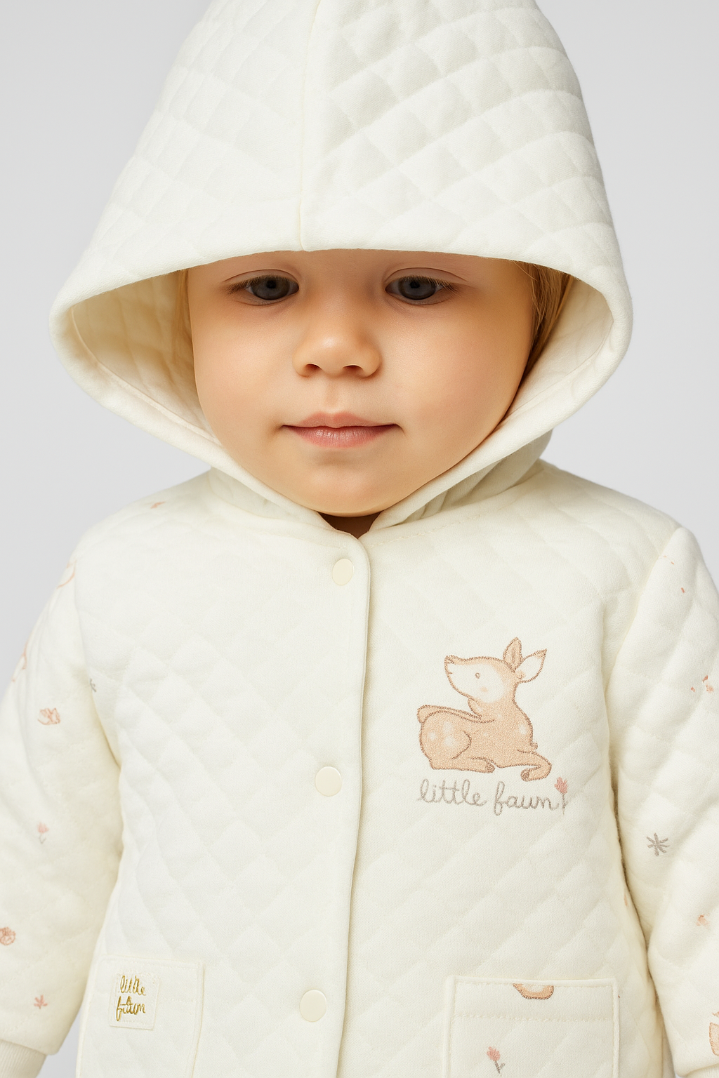 Unisex önden çıtçıt kapamalı yavru ceylan baskılı cepli pamuklu kapşonlu hırka