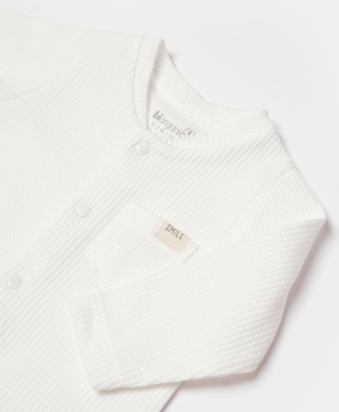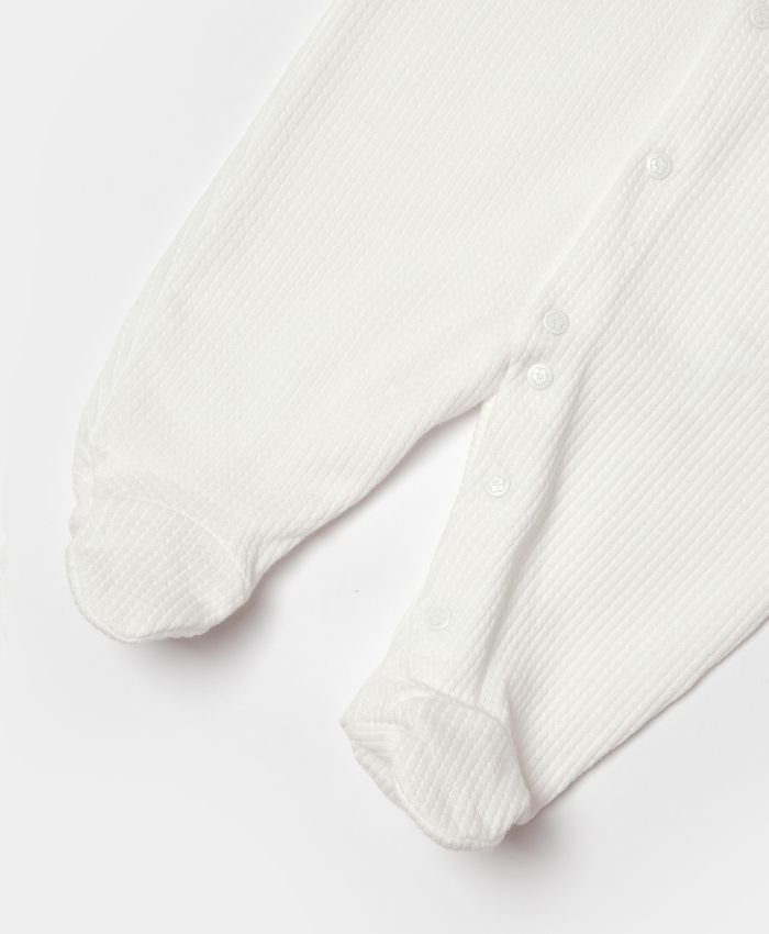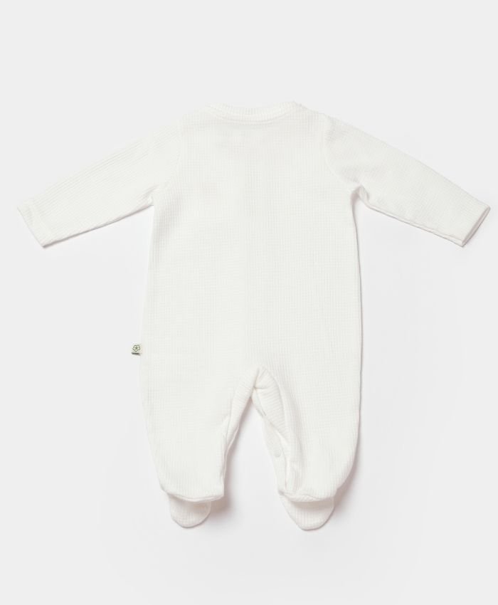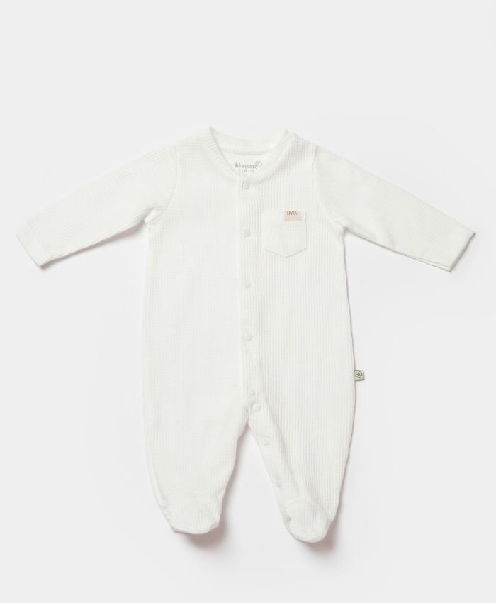 Unisex waffle kumaş önden çıtçıtlı organik patikli tulum – ekru renk – 3 – 9 ay -pamuklu – çıtçıtlı