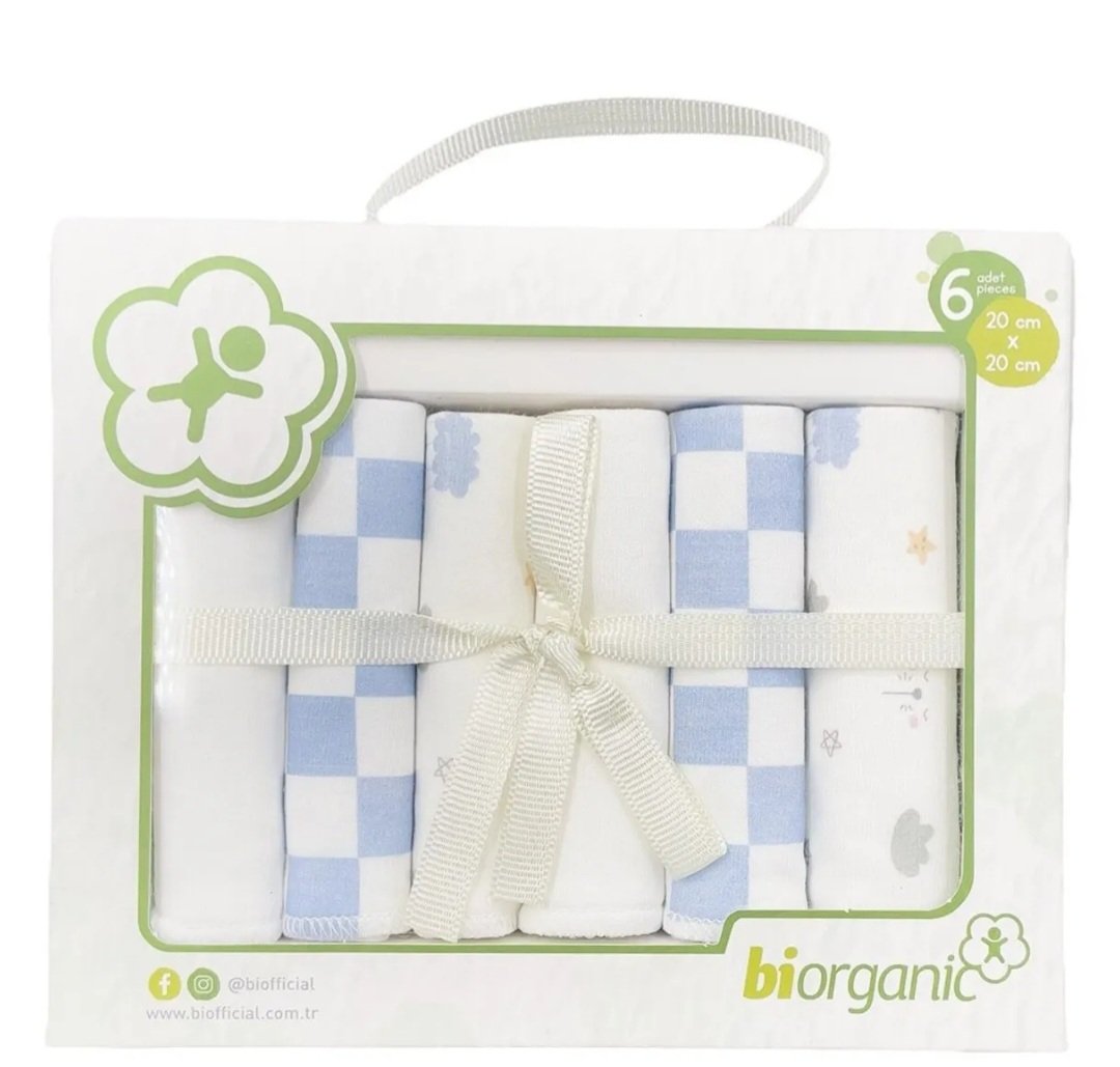 YÜZDE YÜZ ORGANİK PAMUK İPLİĞİ 6'LI HAVLU MENDİL – MAVİ